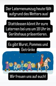 « Alle Veranstaltungen Diese Veranstaltung hat bereits stattgefunden. Laternenumzug findet nicht statt – Treff im FFw-Gerätehaus in Mechow 14. November um 18:00 - 20:00 « Skat- und Knobelabend der FFw Bäk-Mechow-Römnitz Gedenkfeier am Volkstrauertag » Zum Kalender hinzufügen Google Kalender iCalendar Outlook 365 Outlook Live Details Datum: 14. November Zeit: 18:00 - 20:00 Veranstalter Gemeinde Bäk Veranstaltungsort Feuerwehrgerätehaus Mechow
